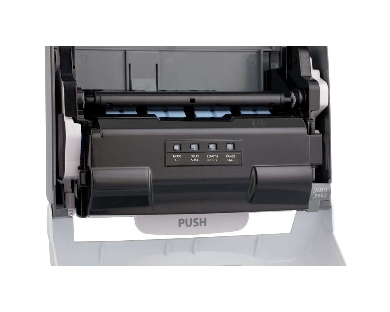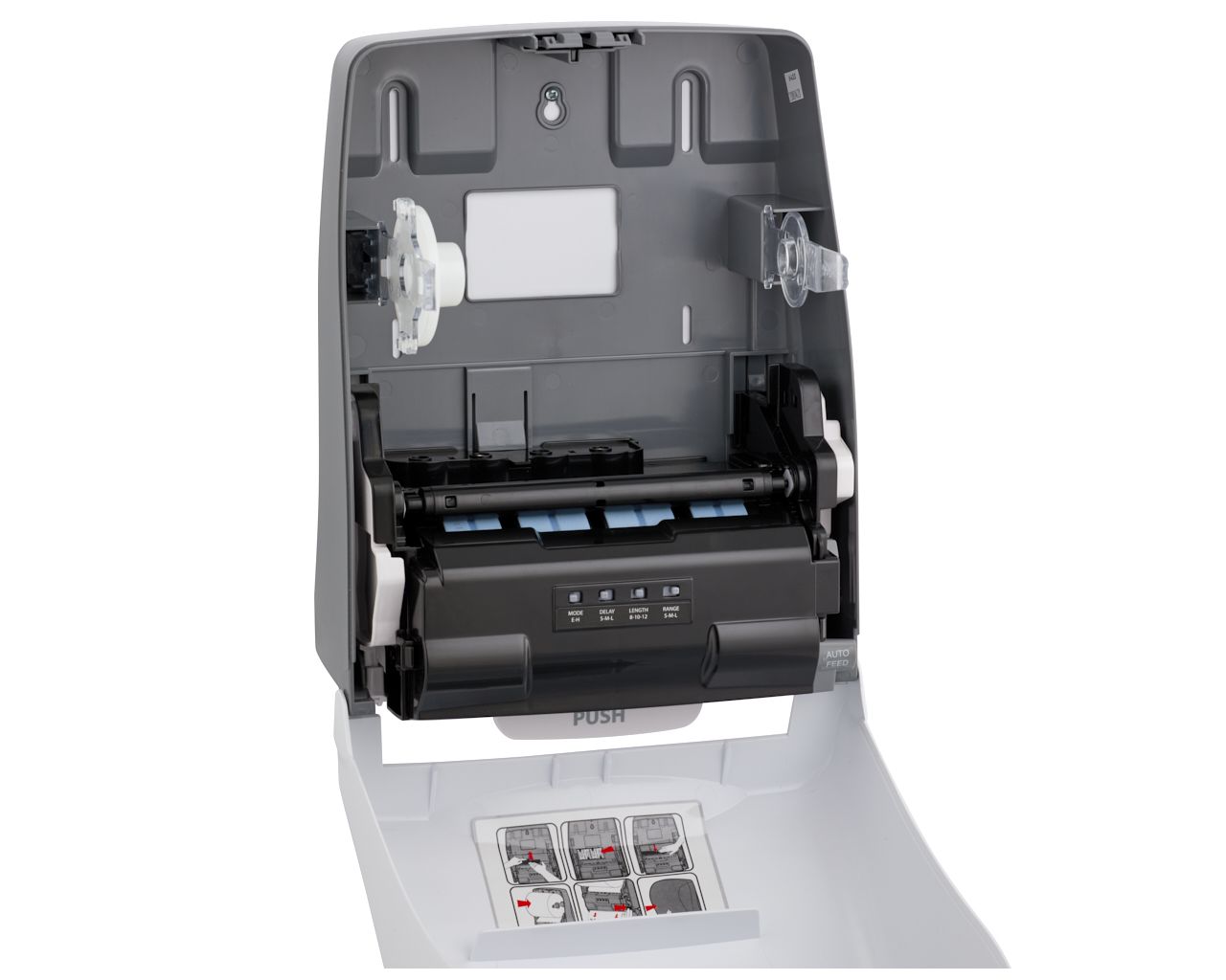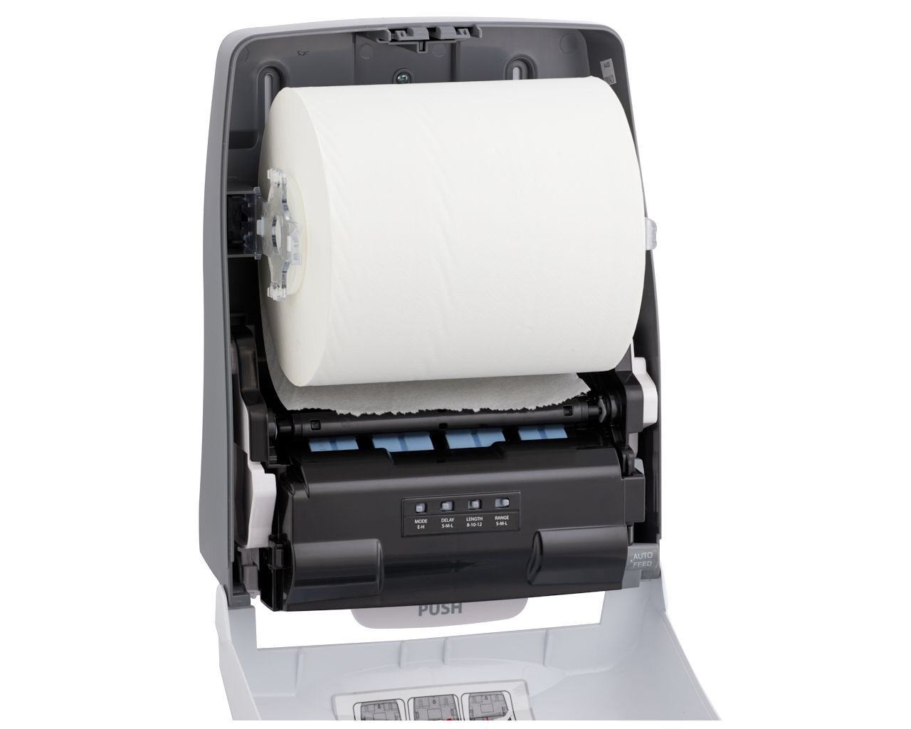 – w sytuacji awaryjnej ręcznik można wysuwać przez naciśnięcie dźwigni PUSH, znajdującej się w dolnej części podajnika
