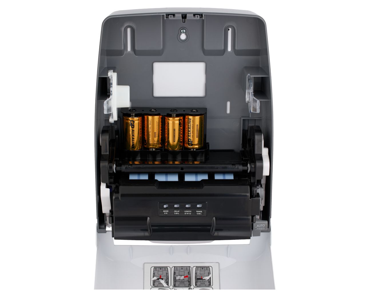 RANGE – przełącznik odległości, na jaką należy zbliżyć dłonie do urządzenia w celu wysunięcia ręcznika (dotyczy ustawienia przełącznika MODE w pozycji H), ma trzy ustawienia: