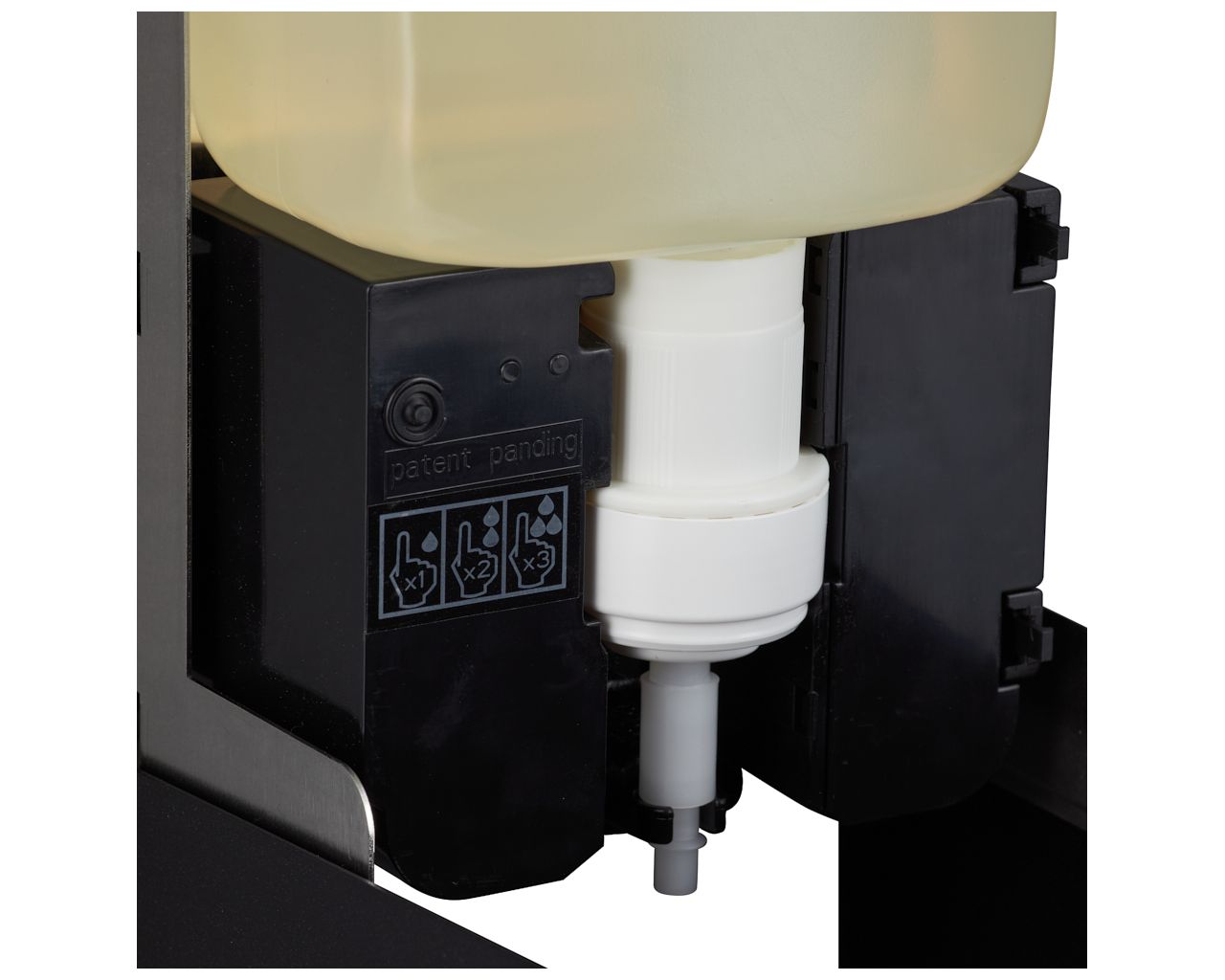 – dozownik wyposażony jest w unikalny system programowania wielkości dozy podawanego mydła