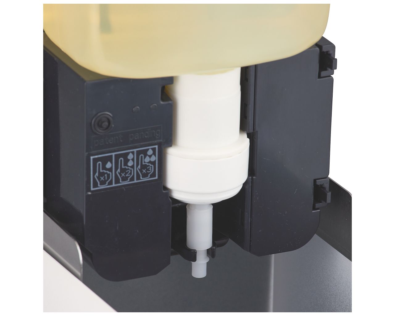 – dozownik wyposażony jest w unikalny system programowania wielkości dozy podawanego mydła
