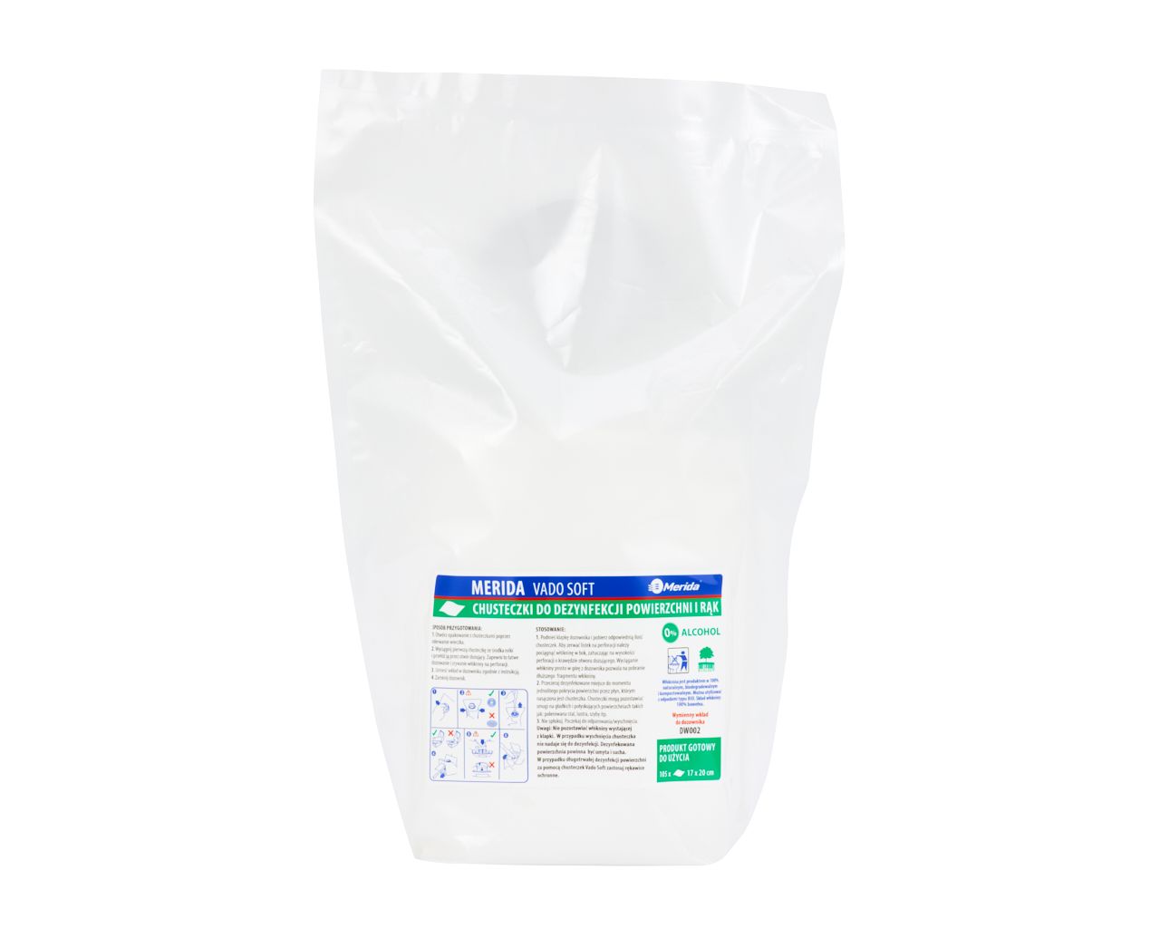 Chusteczki nasączone do dezynfekcji rąk i powierzchni MERIDA VADO SOFTbezalkoholowe105 listków.