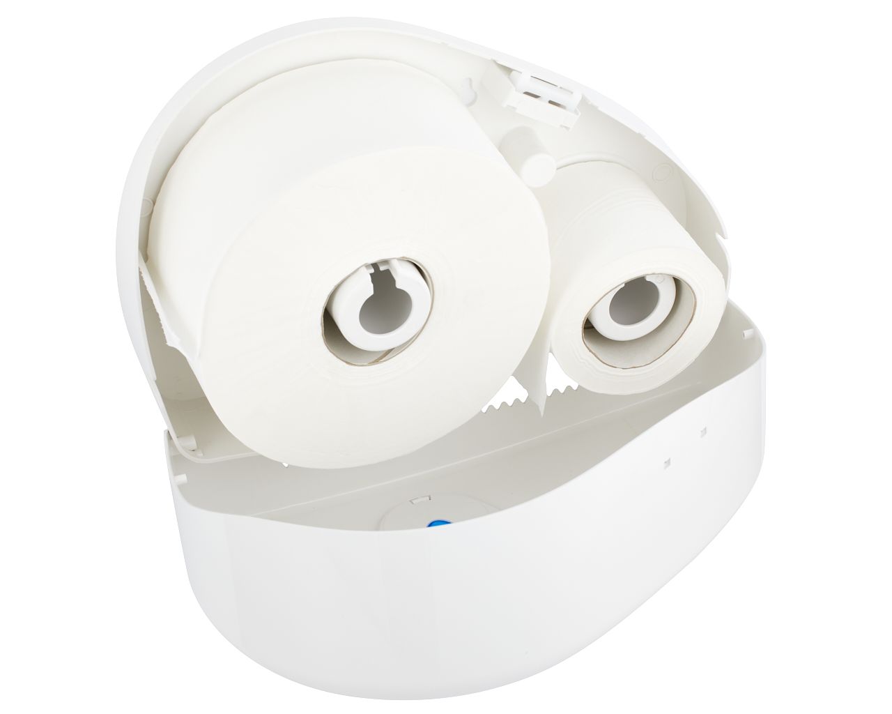 Pojemnik na papier toaletowy MERIDA TOP DUO z uchwytem na resztkę rolkitworzywo ABS, białyokienko niebieskie
