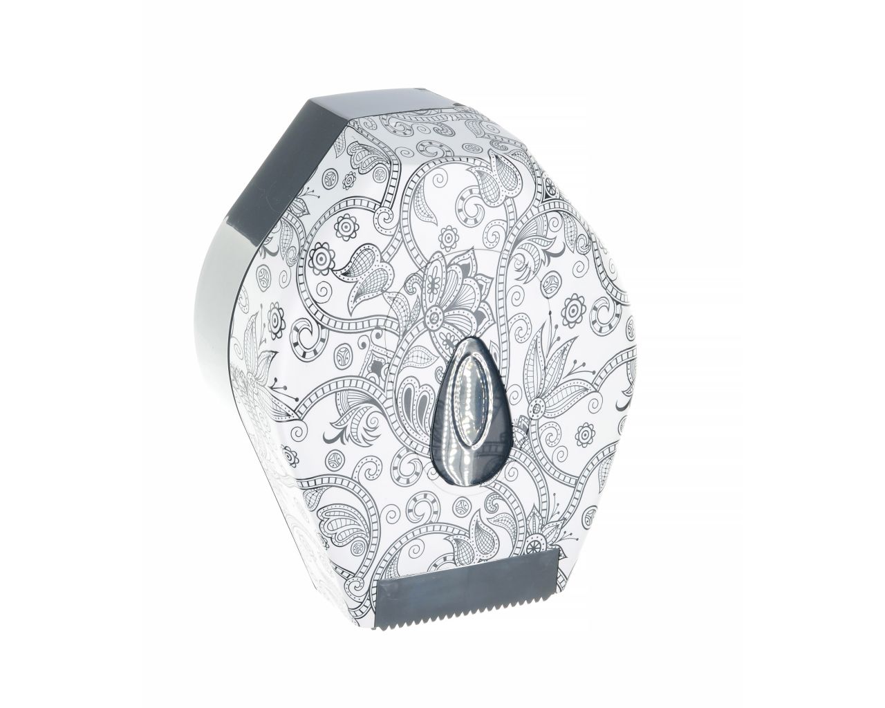 Pojemnik wykonany z wysokiej jakości tworzywa ABS. Odporny na działanie UV. Posiada ozdobne okienko w kolorze szarym, które umożliwia kontrolę ilości papieru w pojemniku. Można w nim stosować papier o maksymalnej średnicy roli 19 cm. Pojemnik zamykany na kluczyk.