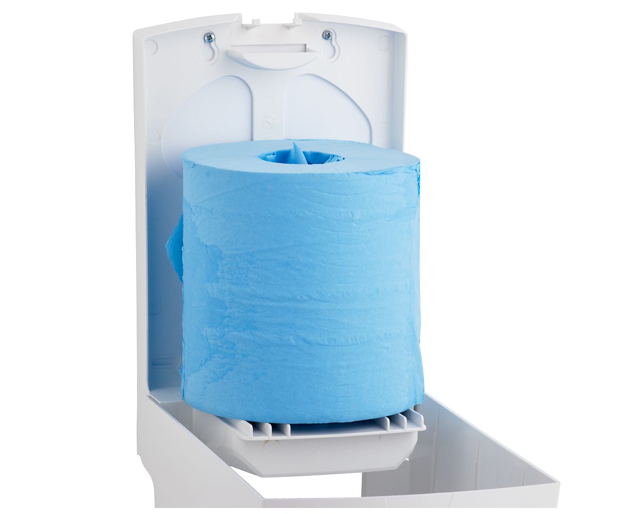 Pojemnik na ręczniki papierowe w rolach MERIDA TOP MAXItworzywo ABS, białyokienko niebieskie