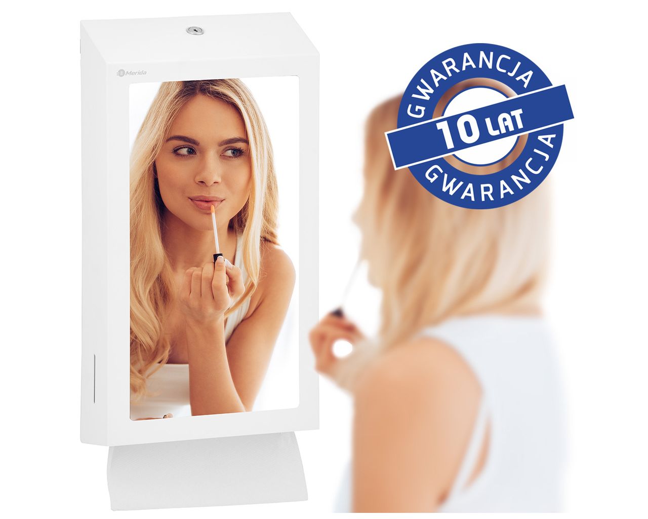 Pojemnik na ręczniki składane z lustrem ze stali SuperMirror „2w1″ MERIDA STELLA SLIM WHITE LINE MEGA COMBObiały