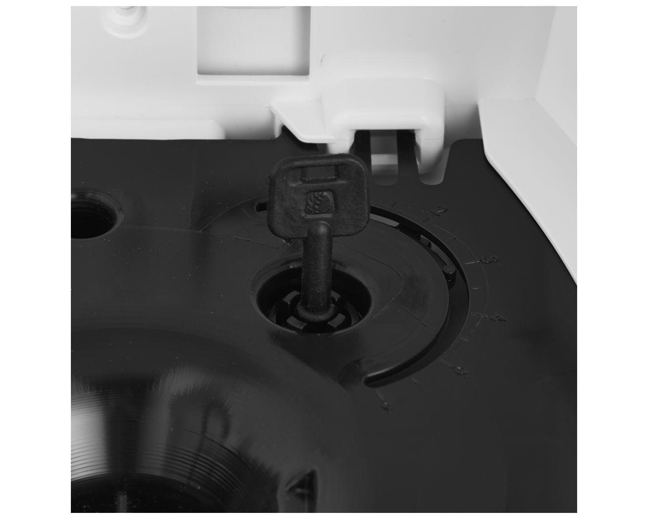 Pojemnik posiada 13-stopniową regulację otworu dozującego za pomocą kluczyka do otwierania pojemnika. Umożliwia to dopasowanie otworu dozującego do każdego ręcznika.
