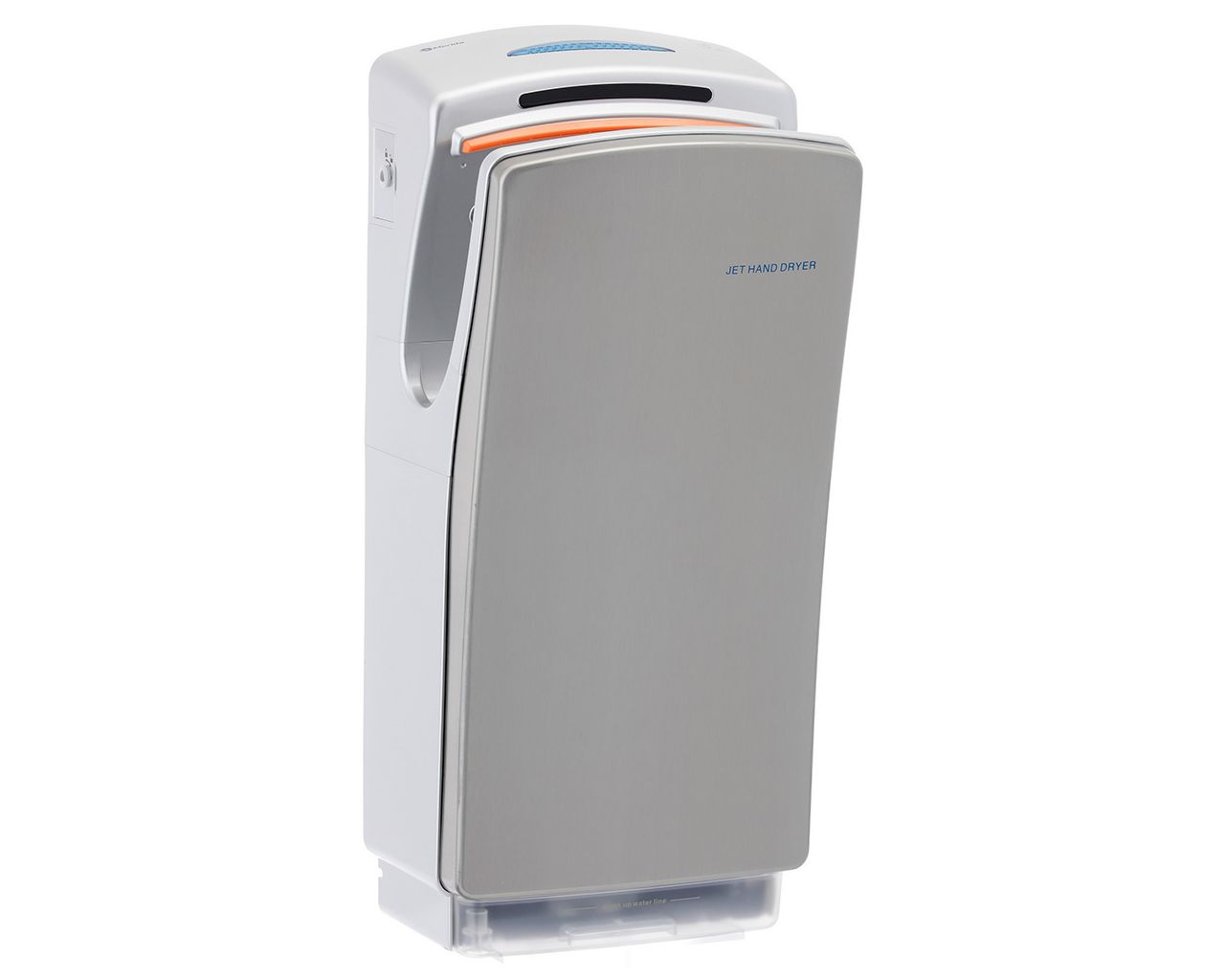 Woda zdmuchiwana z rąk odprowadzana jest do specjalnego zbiorniczka, który znajduje się w dolnej części obudowy. Zapobiega to „rozchlapywaniu” wody wokół suszarki. W dolnej części obudowy znajduje się również filtr antybakteryjny z warstwą pochłaniającą zapachy