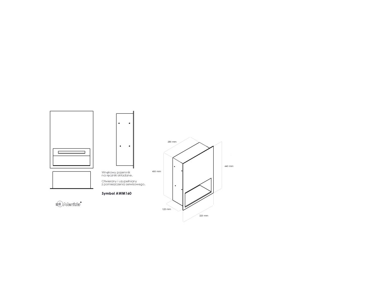 Wnękowy kosz na odpadyotwarty MERIDA DRAGONstal matowaSymbol: KWM1602 250,00 zł