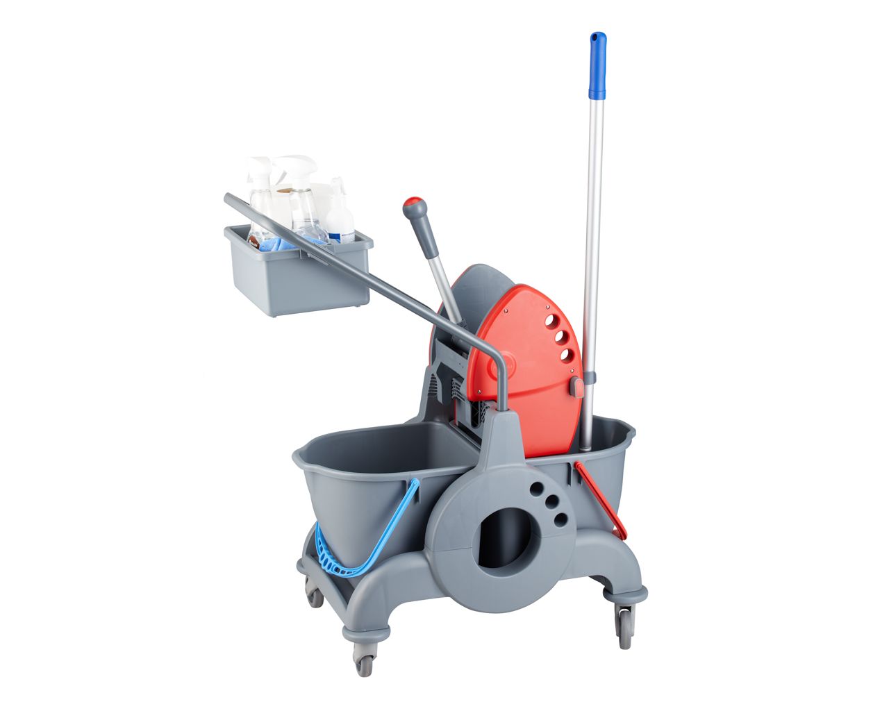 – szczękowa prasa do wyciskania mopów pozwala na dokładne usunięcie nadmiaru wody bez nadmiernego wysiłku