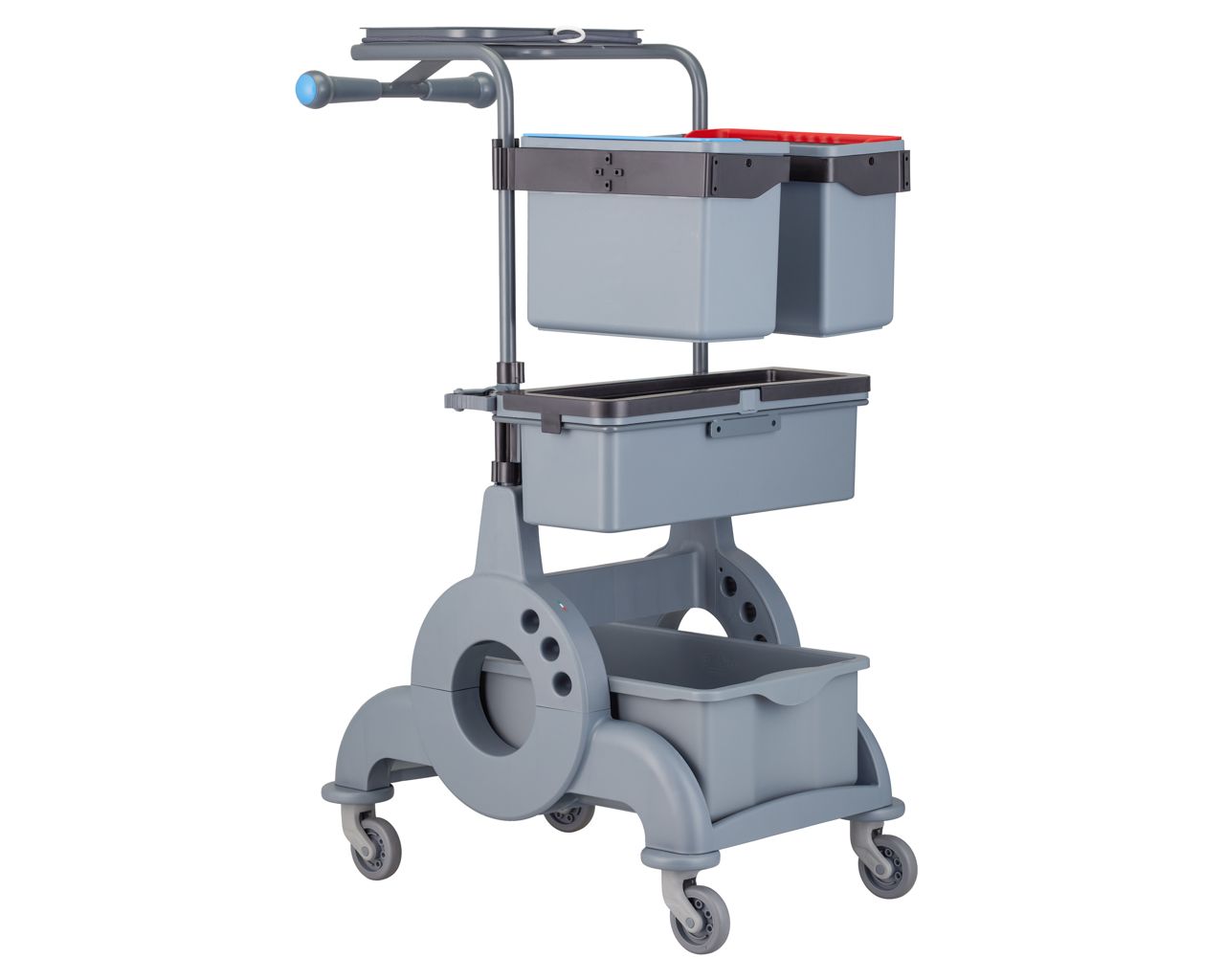 – wózek kuwetowy do sprzątania wykonany jest w całości z wytrzymałego tworzywa sztucznego pochodzącego w 100% z recyklingu