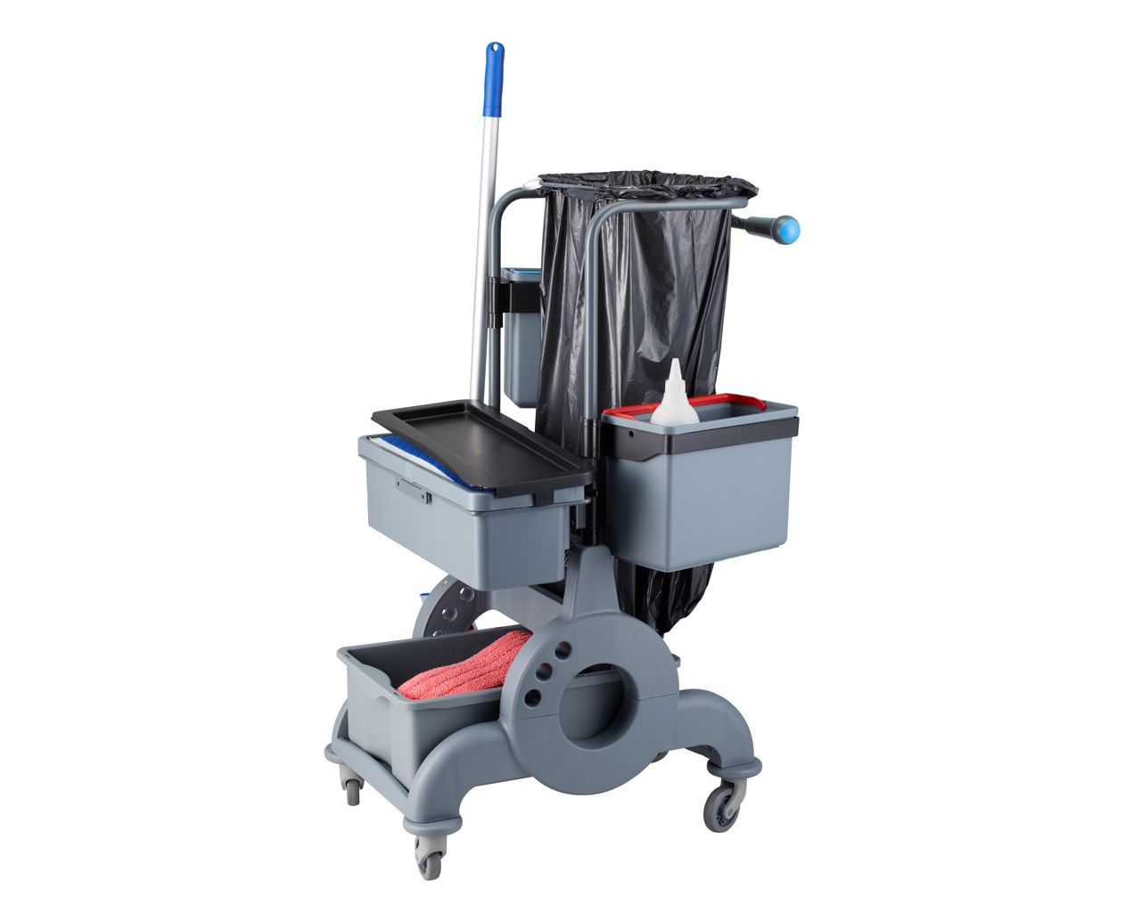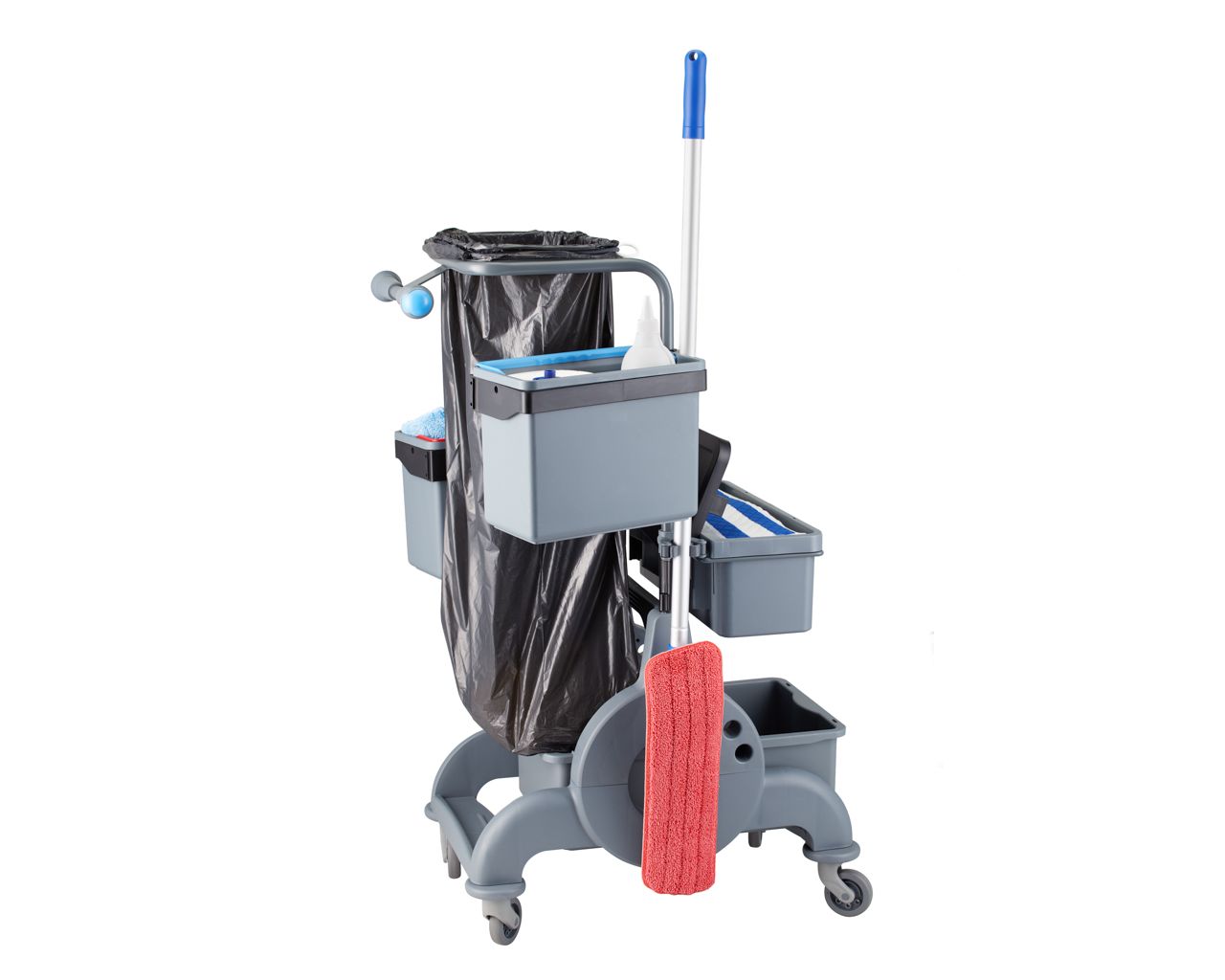Wózek serwisowy do sprzątania kuwetowy2x wiadro 7 l, kuweta 13 l z pokrywąuchwyt na worek 90 l